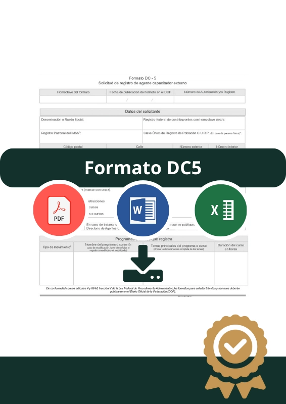 El Formato DC5 STPS 2026 es el formato usado para iniciar el proceso de registro como agente capacitador externo ante la STPS.